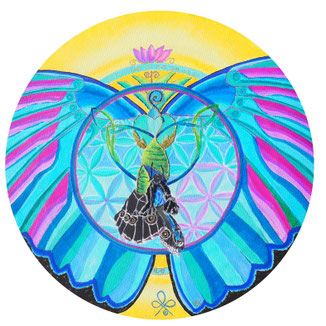 Die Farben sind nach ihrem Stil gewählt. Das Herz mit der Triquetra in Verbindung ist ein Symbol für ewige Verbundenheit. Der Engel – eine verkehrte Triquetra mit Herz. Die Schmetterlinge als Zeichen für die Leichtigkeit, den Tanz und das Fröhliche, dass wir nie verlieren sollten.